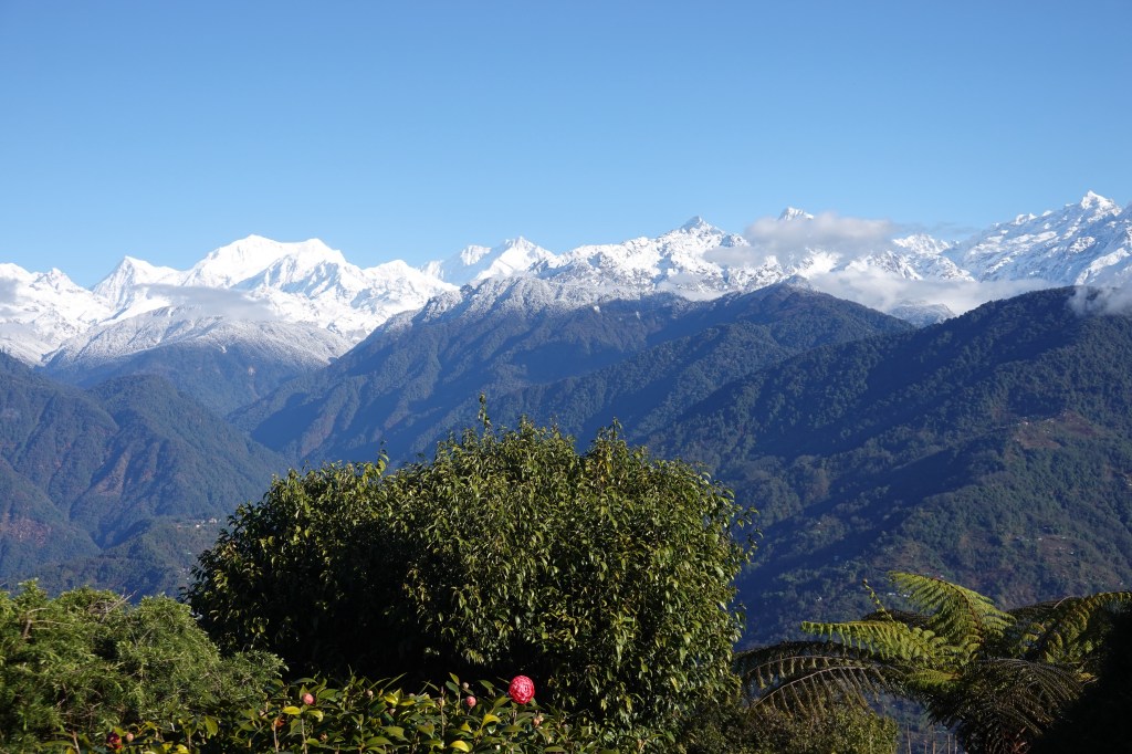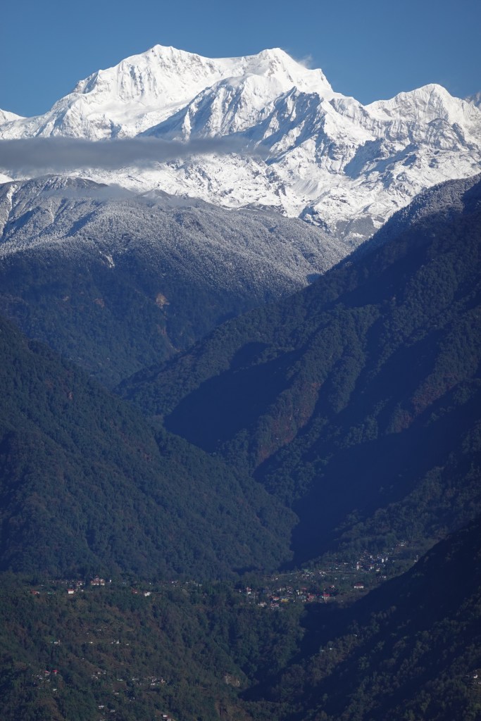 So the holy grail of a trip to the Himalayan foothills for a lot of people is to see, well, the Himalayas. We knew that the optimal time for viewing them is the late fall, with dry cool weather and crisp blue skies, and had set our expectations pretty low. Whether we got a good view or not was not going to make or break the trip. But when we woke up in Pelling after a persistent rain and fog the day before, to find that the weather had shifted and the sky was blue and the infamous haze had been washed away, we were amazed to find out just how close to the mountains we really were. The mountain above is the third highest in the world, clocking in at over 28,000 feet, and was about 30 km away from us. Walking outside to see this brought an almost physical reaction, an involuntary exhalation and an ahhhh, which I have felt before only when walking up to the lip of the Grand Canyon and looking over the edge. We may not see this again this trip – who knows – so best to enjoy it now…