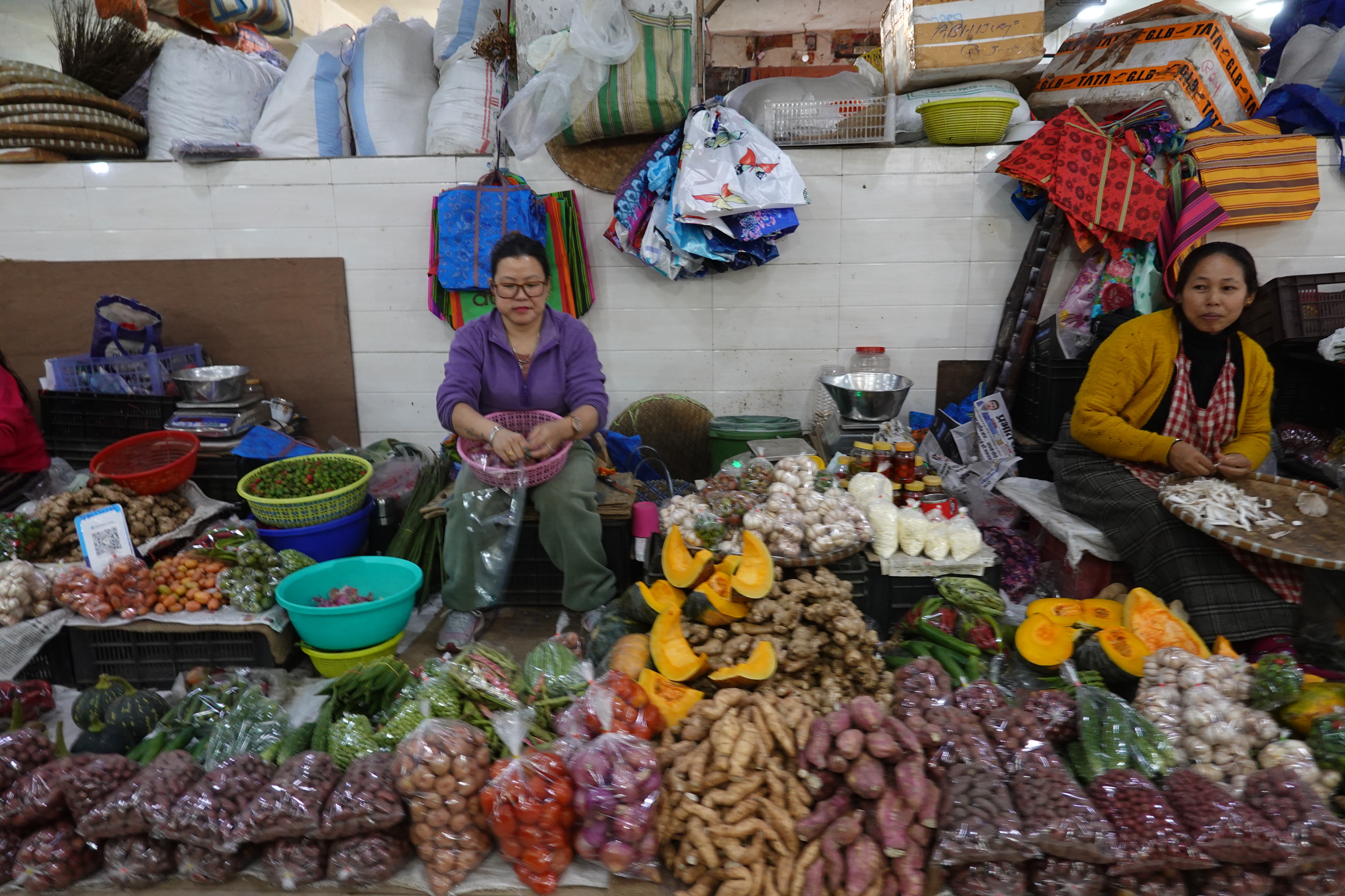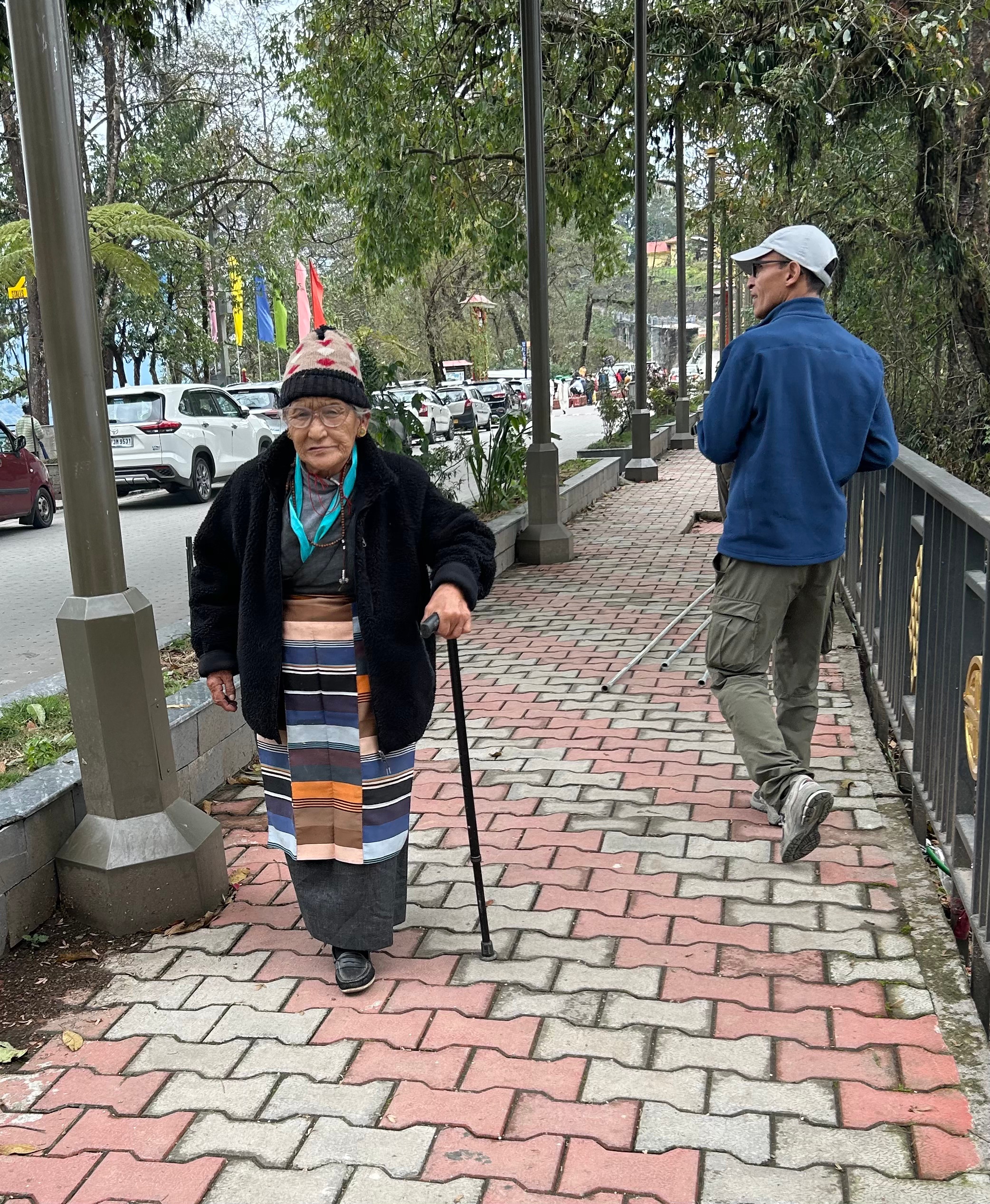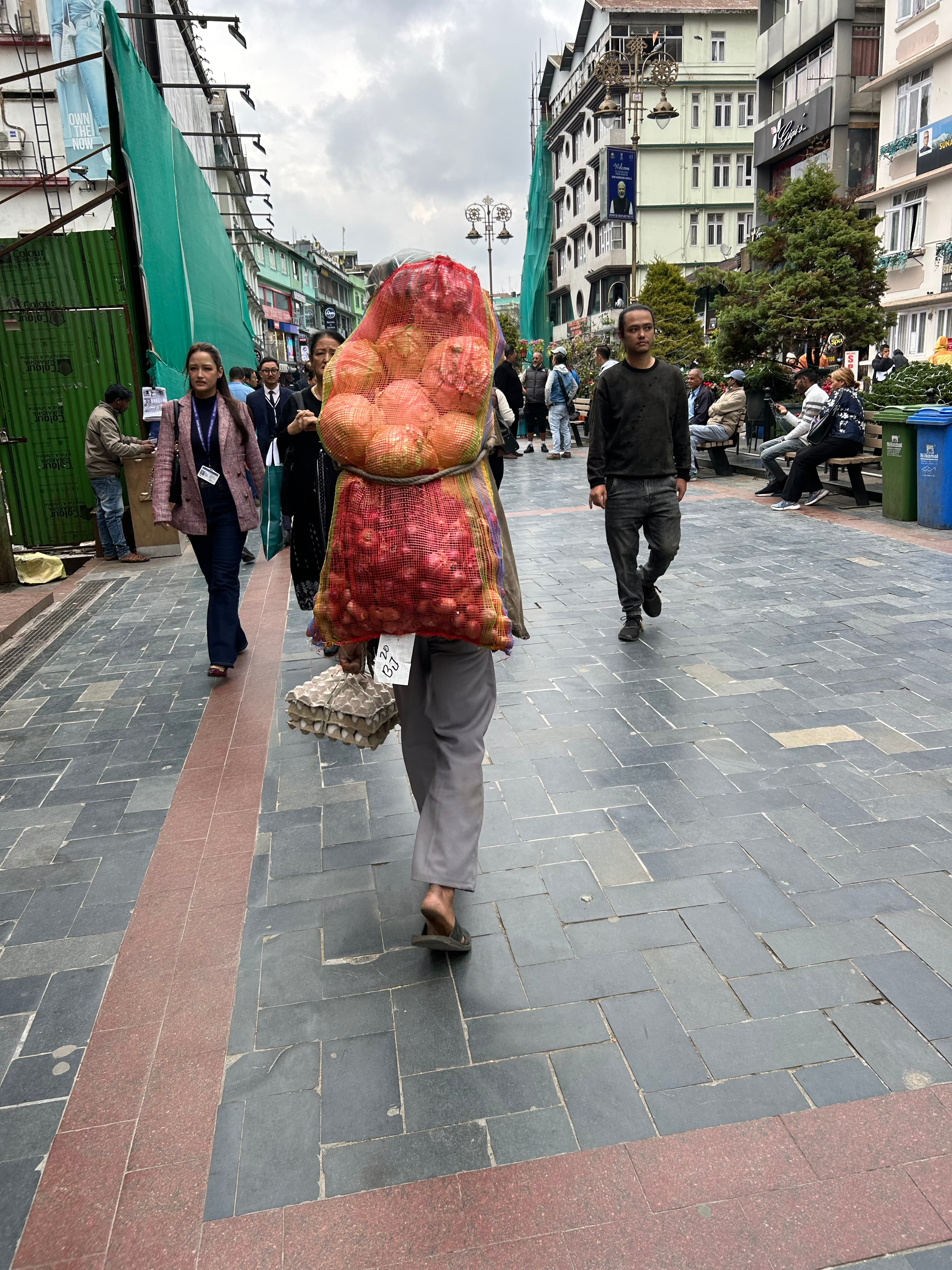 And then we hit Gangtok, which is a misdescription of our arrival, since it is another hill town with only one road in and one road out and more cars than seems possible, so that “hitting” Gangtok means snaking in a continuous stream of traffic for the last 6 or 7 kms, but it all still seems to avoid absolute intractable gridlock. What makes it pretty easy as a pedestrian is that Gangtok has some crazy innovations – a long and spacious pedestrian mall and, more amazingly, sidewalks. They are on the main couple of roads, protected by a decorated railing, and including a few overpasses to let you cross the main street without fear. Our Darjeeling guide is very impressed with this, which he says is reflective of Sikkim’s rule oriented approach to things, as he says that if a sidewalk was installed in Darjeeling it would instantly become a market, a clothes drying venue and a scooter parking lot – why waste that space on pedestrians when there is a perfectly good road to walk on?