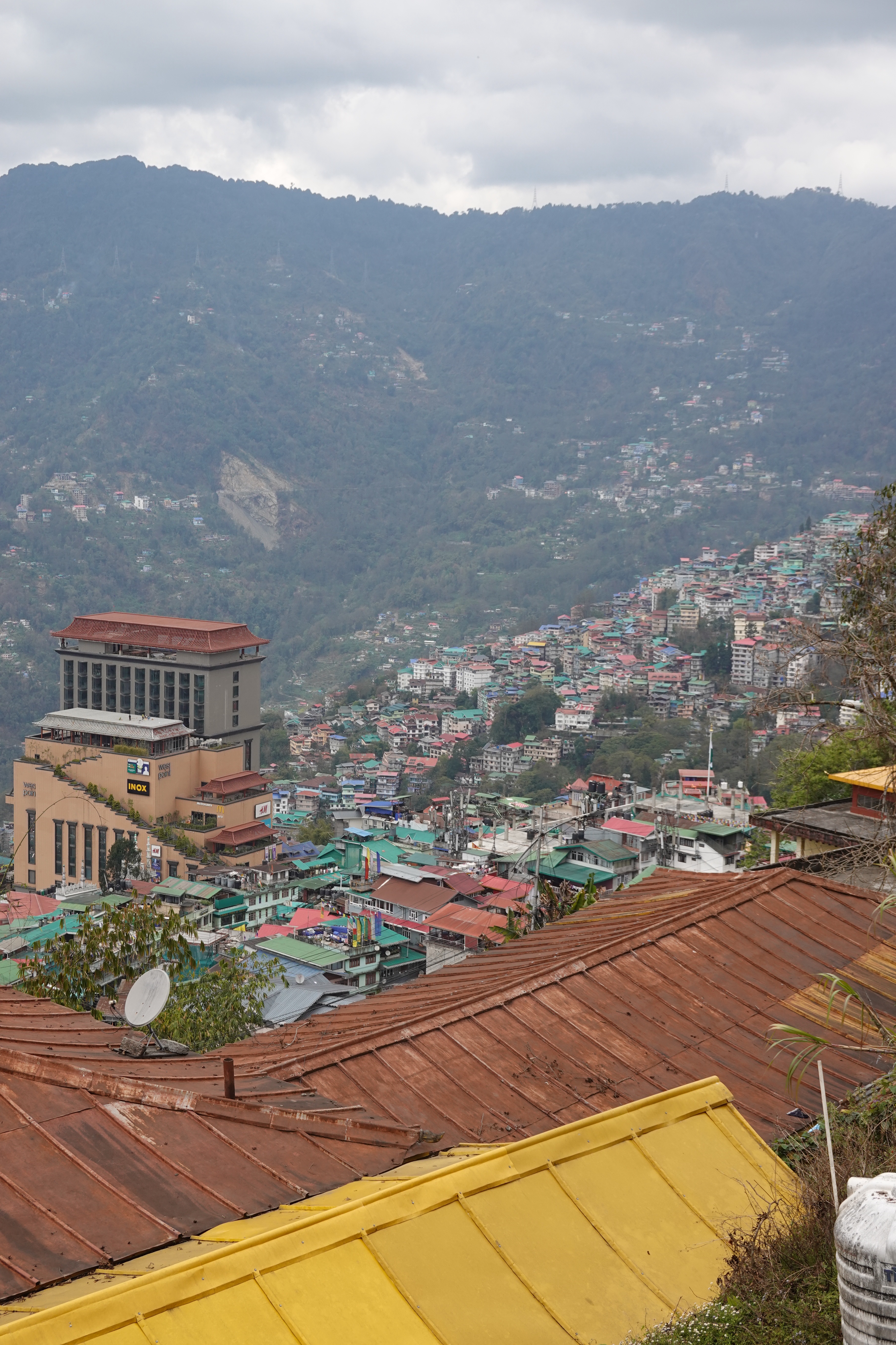OK, enough of that. Before there was TikTok there was Gangtok, the capital of Sikkim. Another Scrambler meets Wild Mouse of a drive in which 3rd gear seemed beyond reach and the markings for 4th and 5th on the gear shift just there for decoration. See screen grab of one section below. There are scatterings of shin-high concrete blocks along the outer edge of the road to act as guardrails, but they seem to be in place more as a gentle reminder not to drive off the road than to actually prevent that from happening. Given their low profile they are more likely to simply impart some initial spin to your vehicle as you do a Thelma and Louise off the edge than to keep you on terra firma. But for all that we sure missed them when there was nothing there at all.