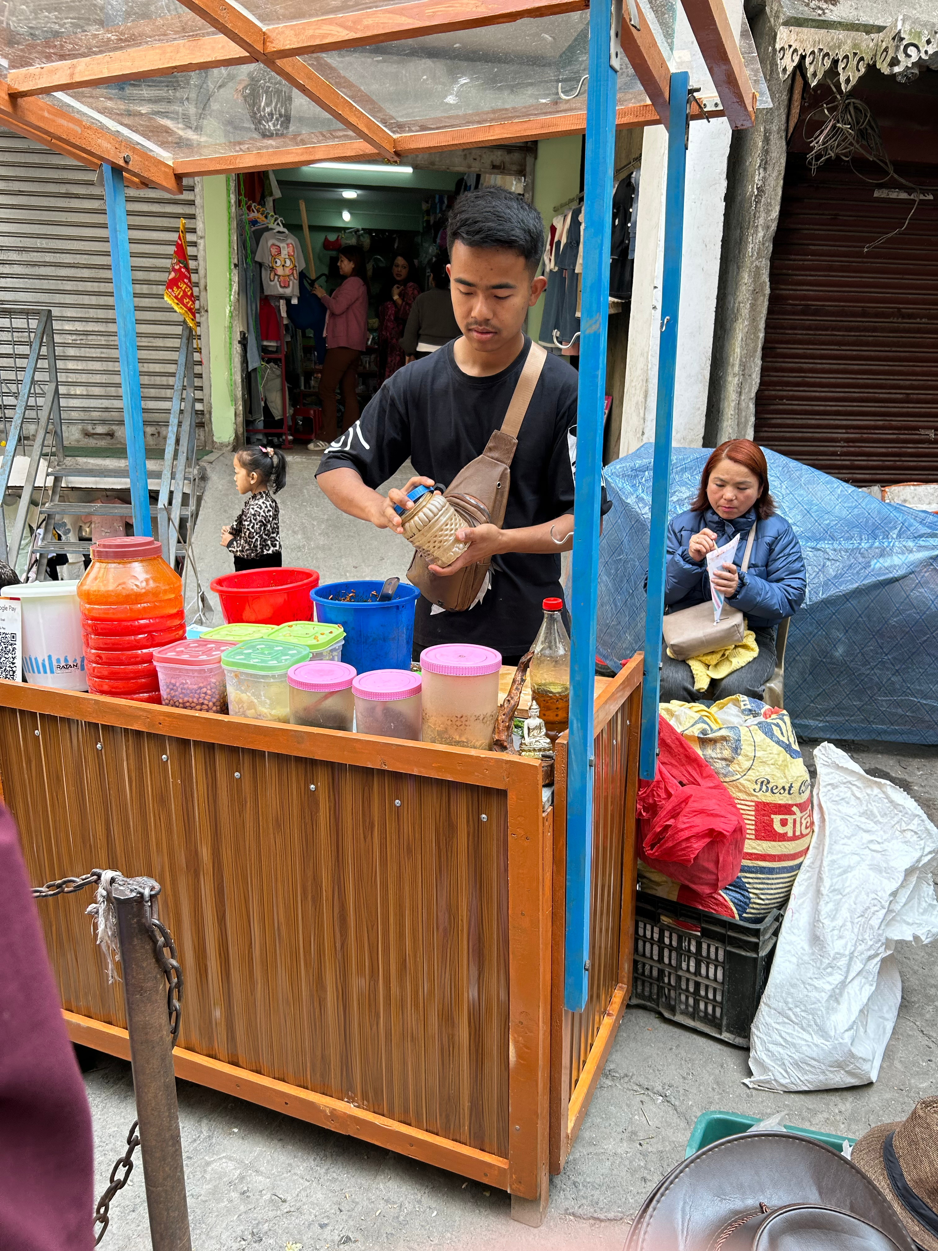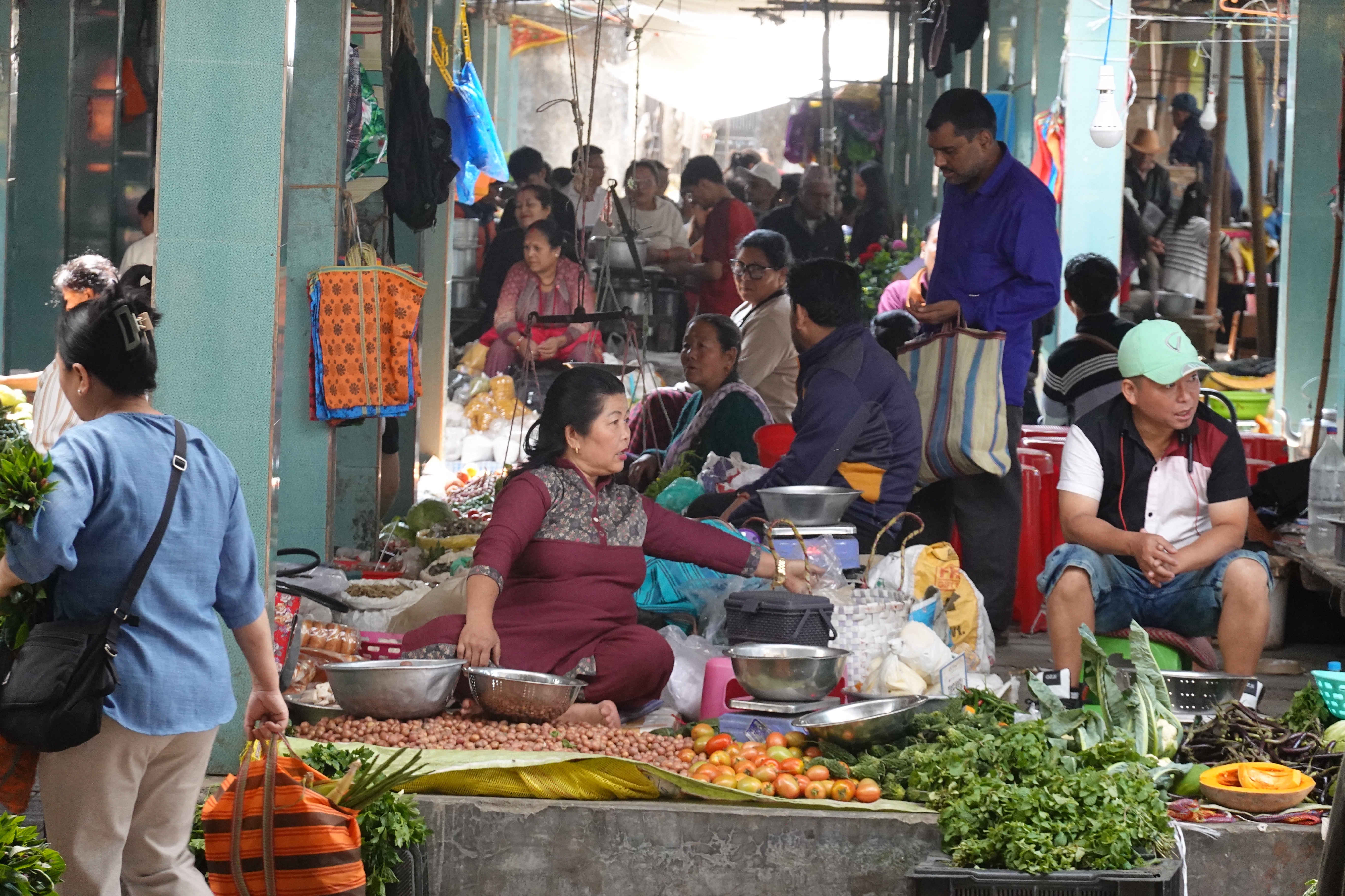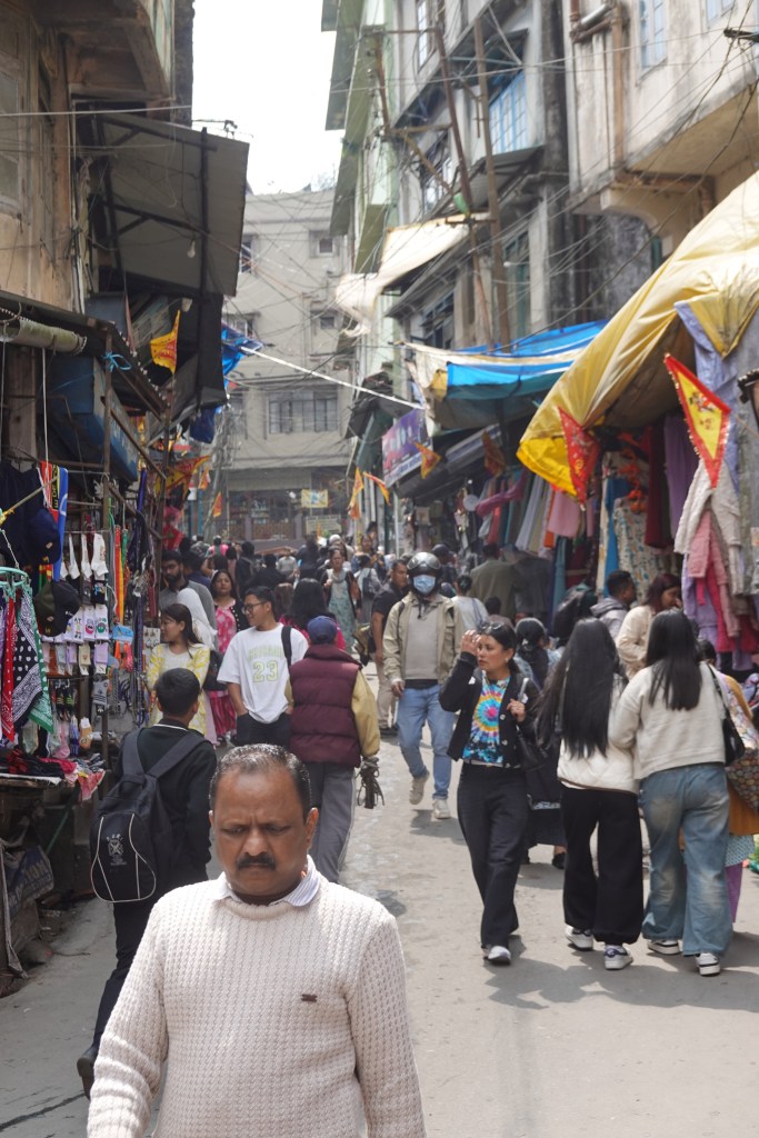 We had been told, by less insightful travellers with less discerning guides, that Kalimpong was a bit of a nothing burger of a place, as they explained to us why they were skipping it to get somewhere else more quickly. Not true. We made our own fun. We visited a Buddhist monastery, a Hindu temple and a Catholic church in a single morning. We saw the largest collection of South American cacti in this part of India. We walked through the cacophonously crowded weekend market, held on Wednesdays, which features a kick-ass momo stall from which we had dumplings that were just ingredients when we arrived and that we ate from a banana leaf placed on a piece of newspaper. We saw the shared taxis starting to load up with all of the people who had arrived in them in the morning from the surrounding areas – these taxis are what we would think of as three row seven or eight seater Jeep equivalents that carry an official maximum of 10 passengers plus the driver and that represent at least half the cars here as the roads are too narrow and twisty for traditional busses. Shopping is stowed on the roof, except flats of eggs, which go on the hood, lashed to the windshield wipers in the hope that it will not rain. And we went to a local paper maker, which involved what seemed to be a descent down steep stairs through a series of back yards, and met the owner, who explained that the guy who actually does the paper making had not come to work that day, but who kindly showed us around the tiny facility anyway – “here is where the wood would be boiled if the worker was here, and here is where the pulp would have been made before your eyes if it was actually being made today” – you get the idea.