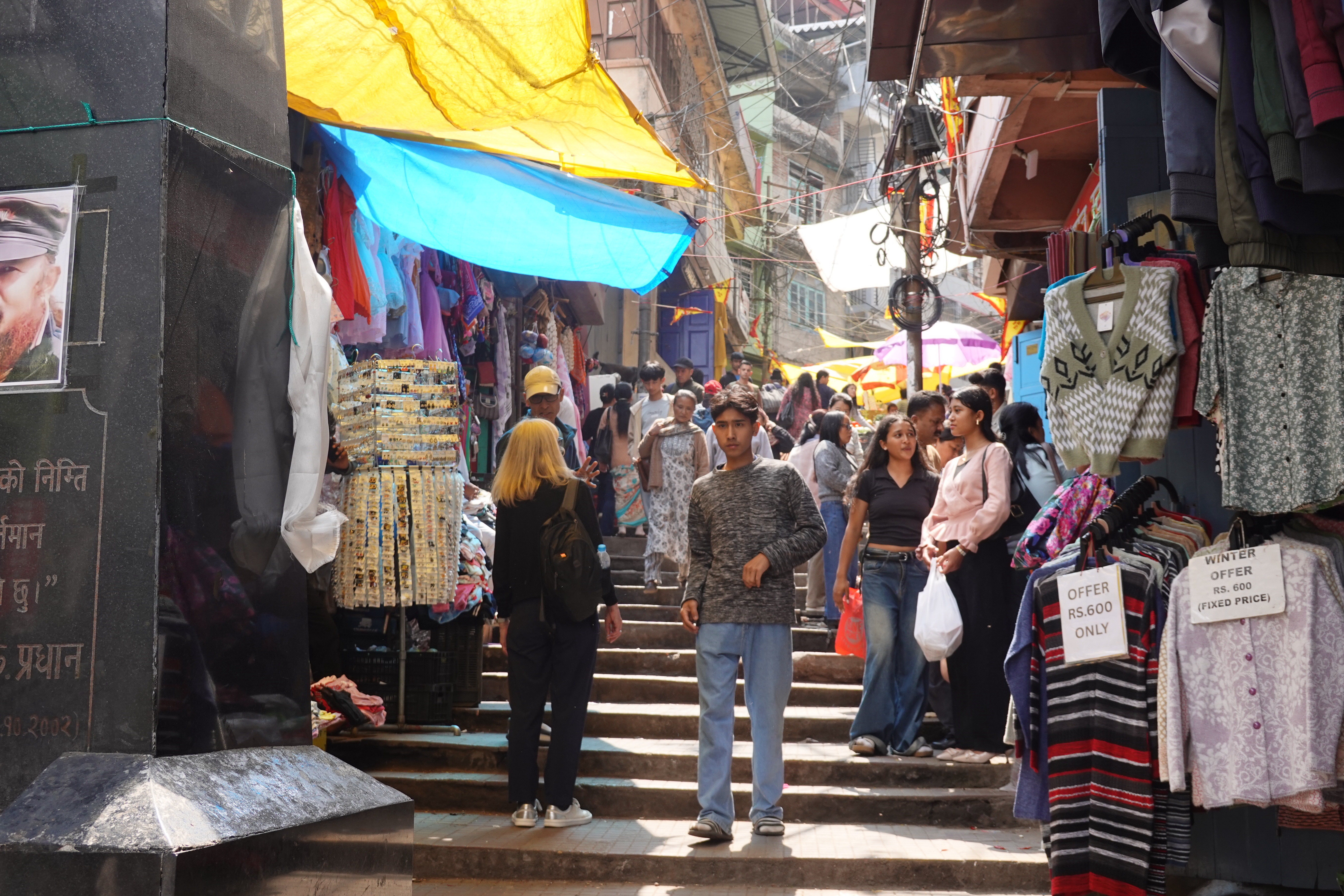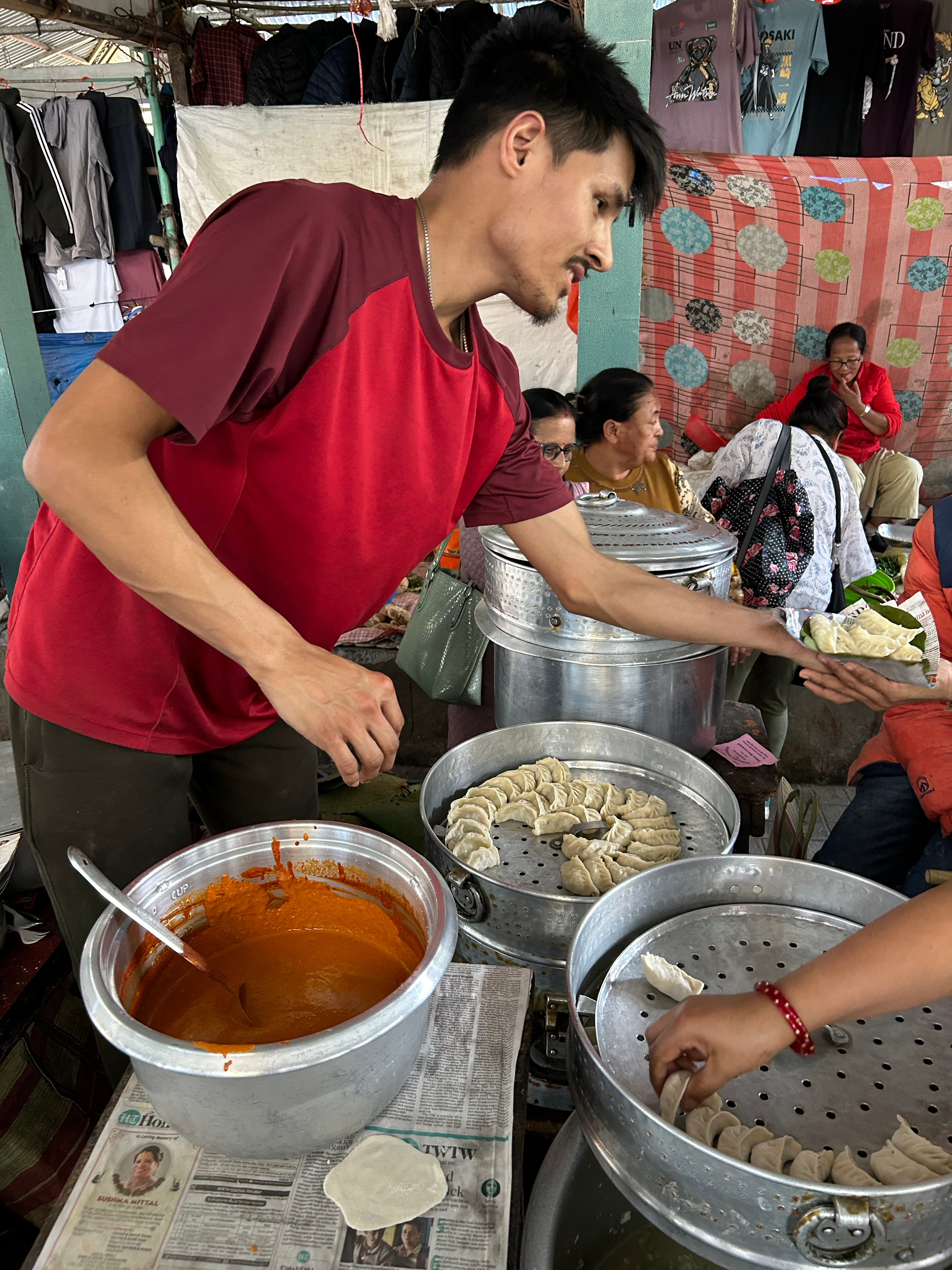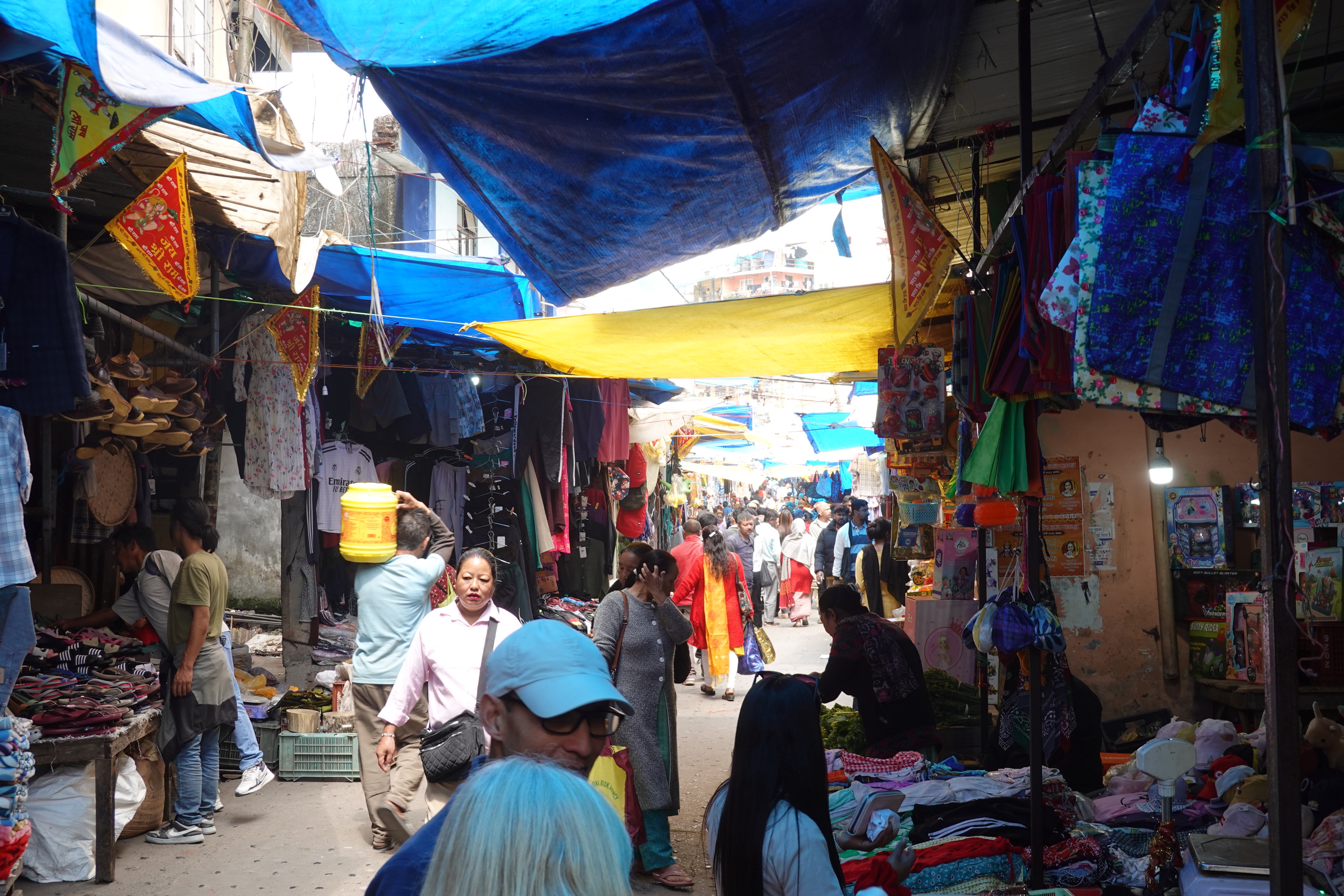We had been told, by less insightful travellers with less discerning guides, that Kalimpong was a bit of a nothing burger of a place, as they explained to us why they were skipping it to get somewhere else more quickly. Not true. We made our own fun. We visited a Buddhist monastery, a Hindu temple and a Catholic church in a single morning. We saw the largest collection of South American cacti in this part of India. We walked through the cacophonously crowded weekend market, held on Wednesdays, which features a kick-ass momo stall from which we had dumplings that were just ingredients when we arrived and that we ate from a banana leaf placed on a piece of newspaper. We saw the shared taxis starting to load up with all of the people who had arrived in them in the morning from the surrounding areas – these taxis are what we would think of as three row seven or eight seater Jeep equivalents that carry an official maximum of 10 passengers plus the driver and that represent at least half the cars here as the roads are too narrow and twisty for traditional busses. Shopping is stowed on the roof, except flats of eggs, which go on the hood, lashed to the windshield wipers in the hope that it will not rain. And we went to a local paper maker, which involved what seemed to be a descent down steep stairs through a series of back yards, and met the owner, who explained that the guy who actually does the paper making had not come to work that day, but who kindly showed us around the tiny facility anyway – “here is where the wood would be boiled if the worker was here, and here is where the pulp would have been made before your eyes if it was actually being made today” – you get the idea.
