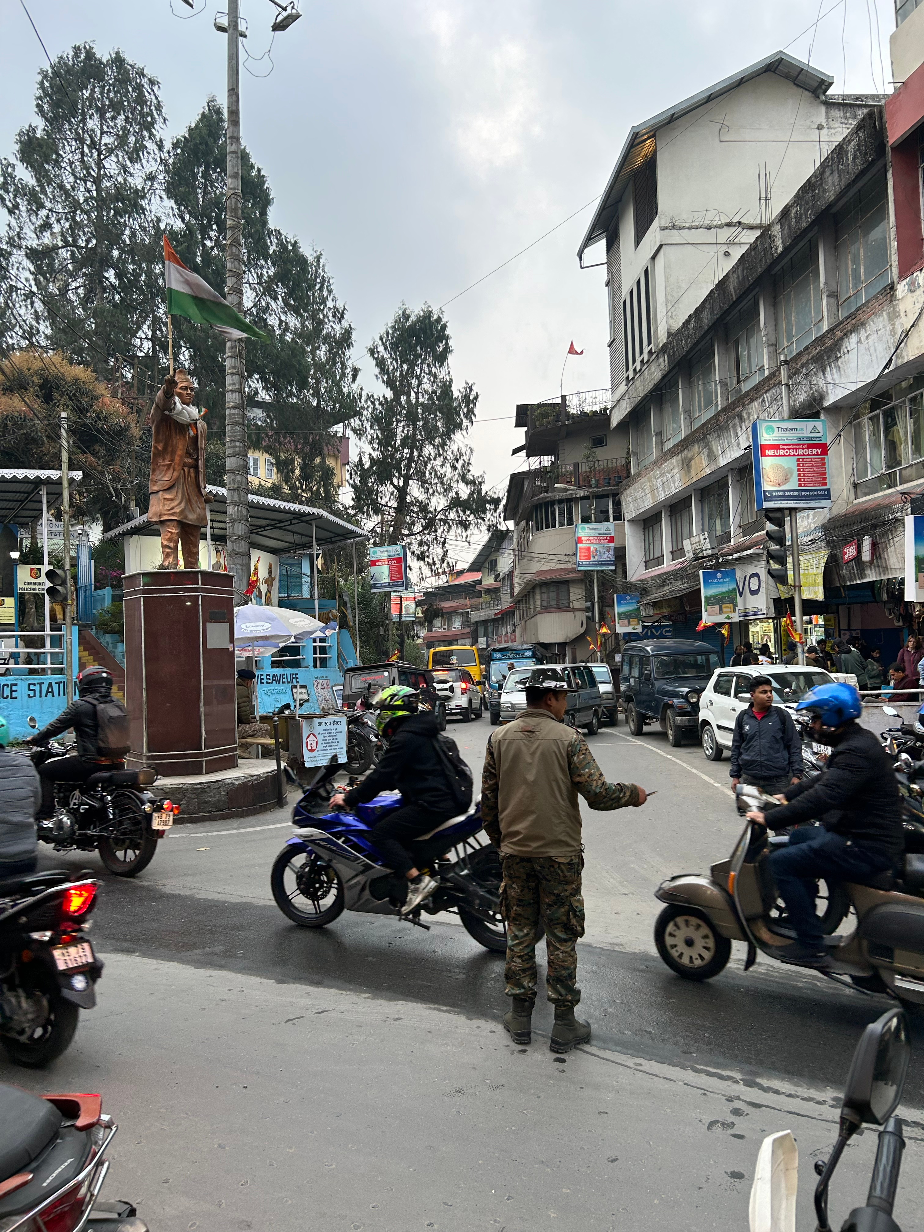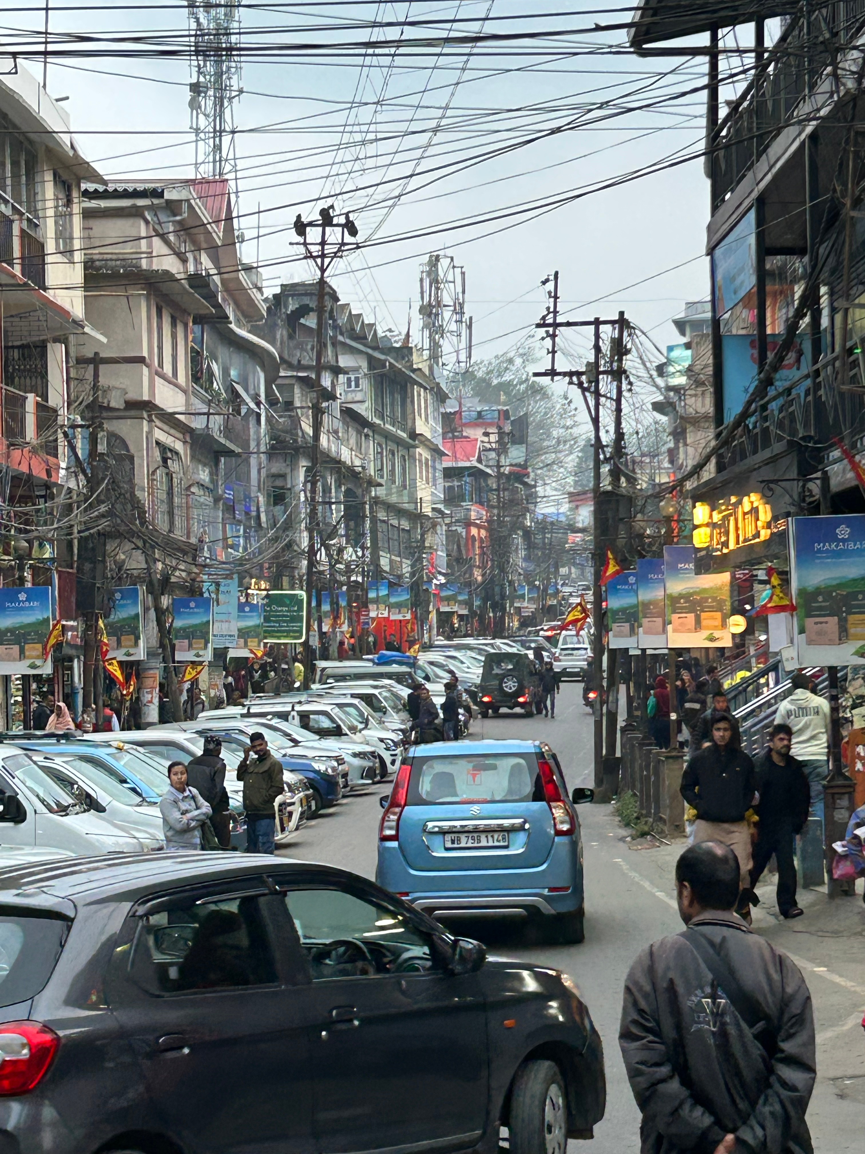 But I needn’t have worried. Kalimpong is a grittier take on a hill town than we have seen so far, but is not without its charms. It has a few sidewalks, which makes it relatively easy for the western tourist to go out for a walk looking for bottled water and a packet of plain crisps, though without success on the crisp front, as the closest thing to plain in any of the pocket-sized stores that were consulted was spicy prawn or one of the other hallucinogenetically conceived and chemically induced flavour combinations. Of course you need to keep an eye out for heaved pavers and steep stairways to the side that actually start halfway into the sidewalk and the occasional dangling electrical wire that may or may not be live. Everything is relative.