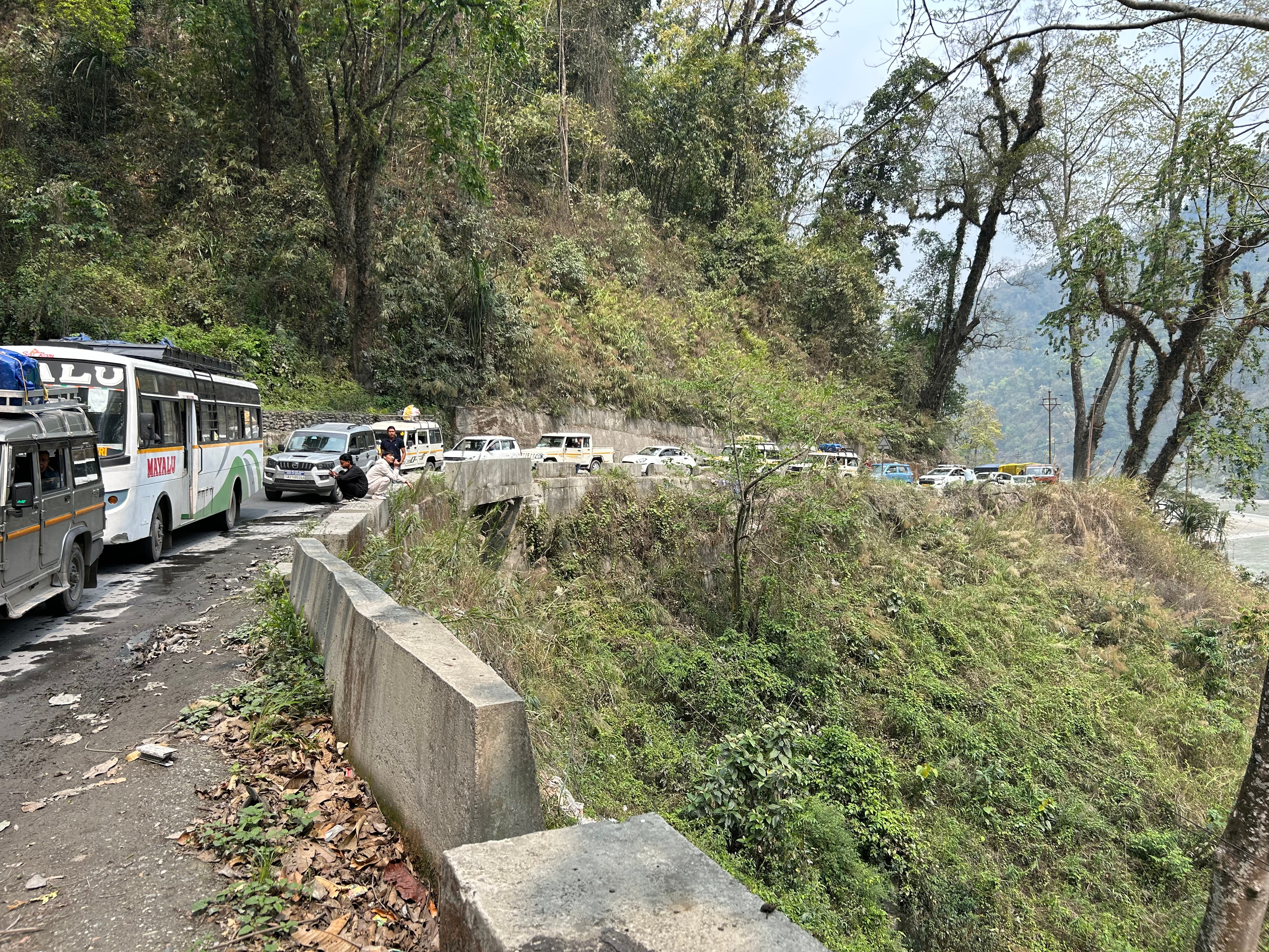 And then all too soon we were gone, heading down out of the foothills toward the lowlands one last time. A last Indian mountain road; a last traffic jam, this time for construction to repair landslide damage from recent storms, which was good because in places the downhill side of the road had washed away right into the edge of the outside lane; a last cadre of roadside monkeys, casting a baleful eye on us as we crept past in traffic, as though sizing us up for a quick smash and grab. Then onto level ground and straight roads, which were disorienting. And heat and humidity and palms and betel nut trees and towns that were much more like the India we had seen in other parts of the country. But sitting in the back of an expertly driven car gives the passengers a kaleidoscopic view of all this, which is endlessly entertaining – if the video at the end of this post loads and plays, you can see a tiny bit of it.