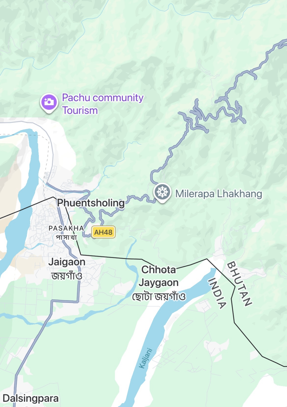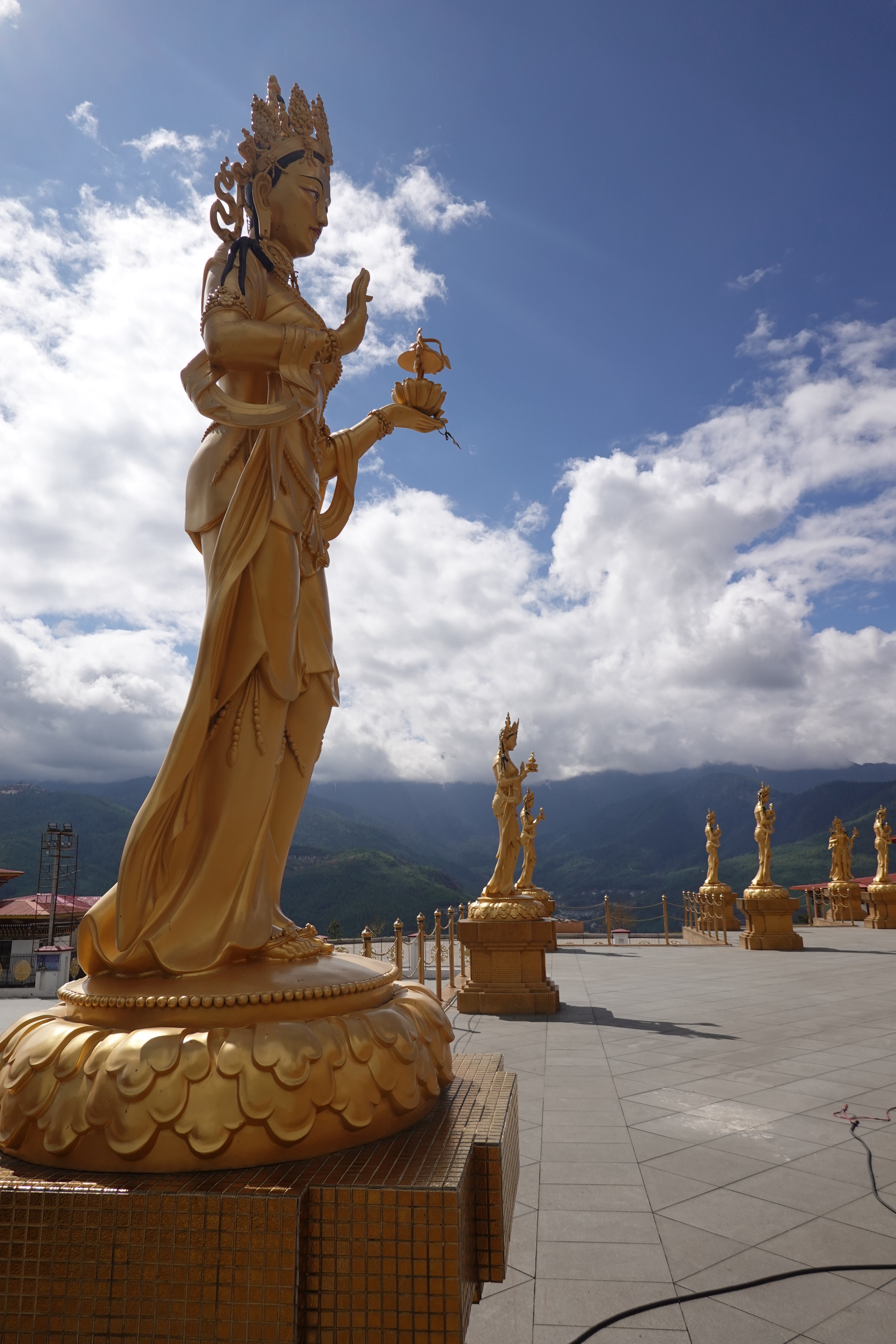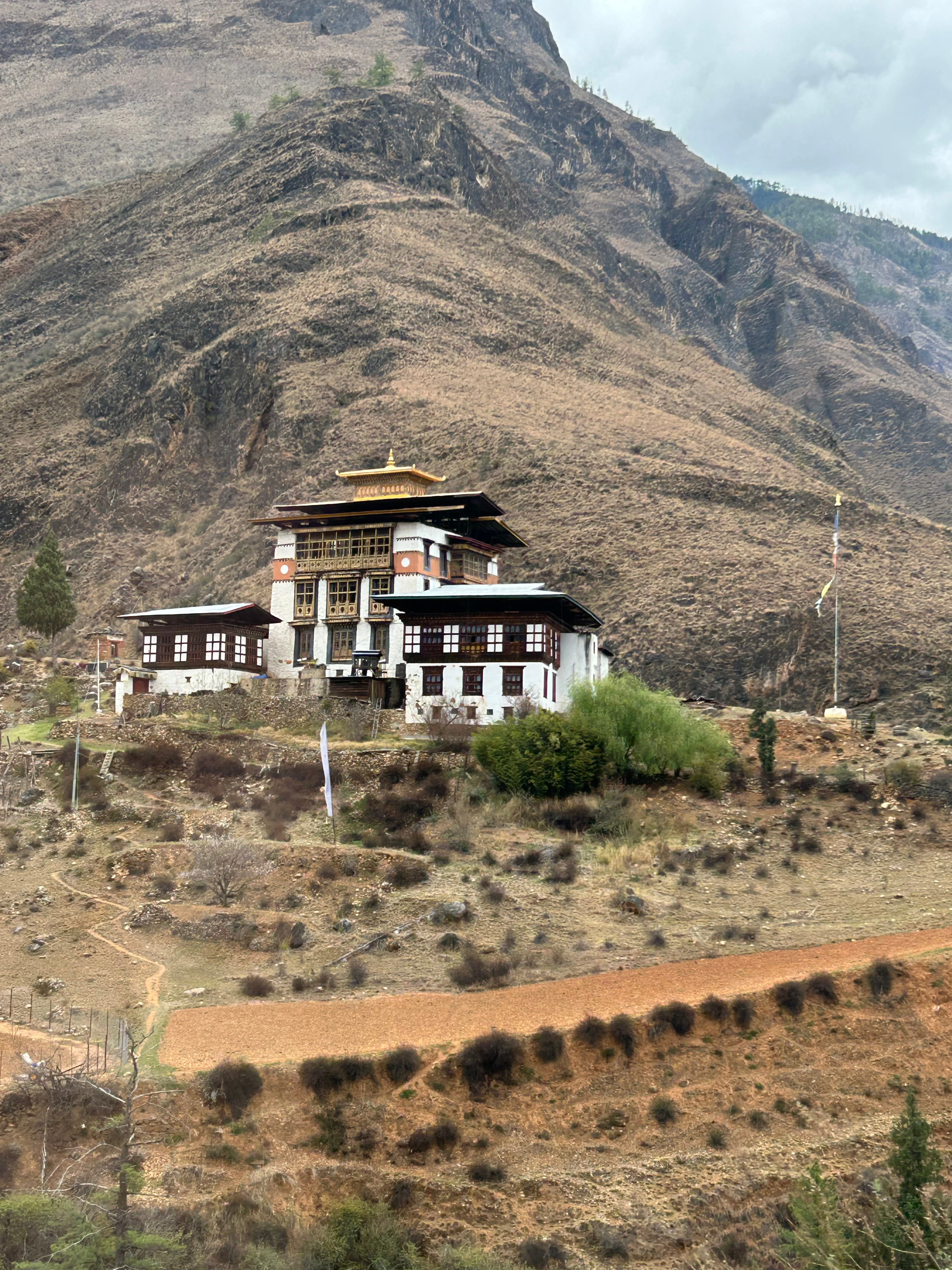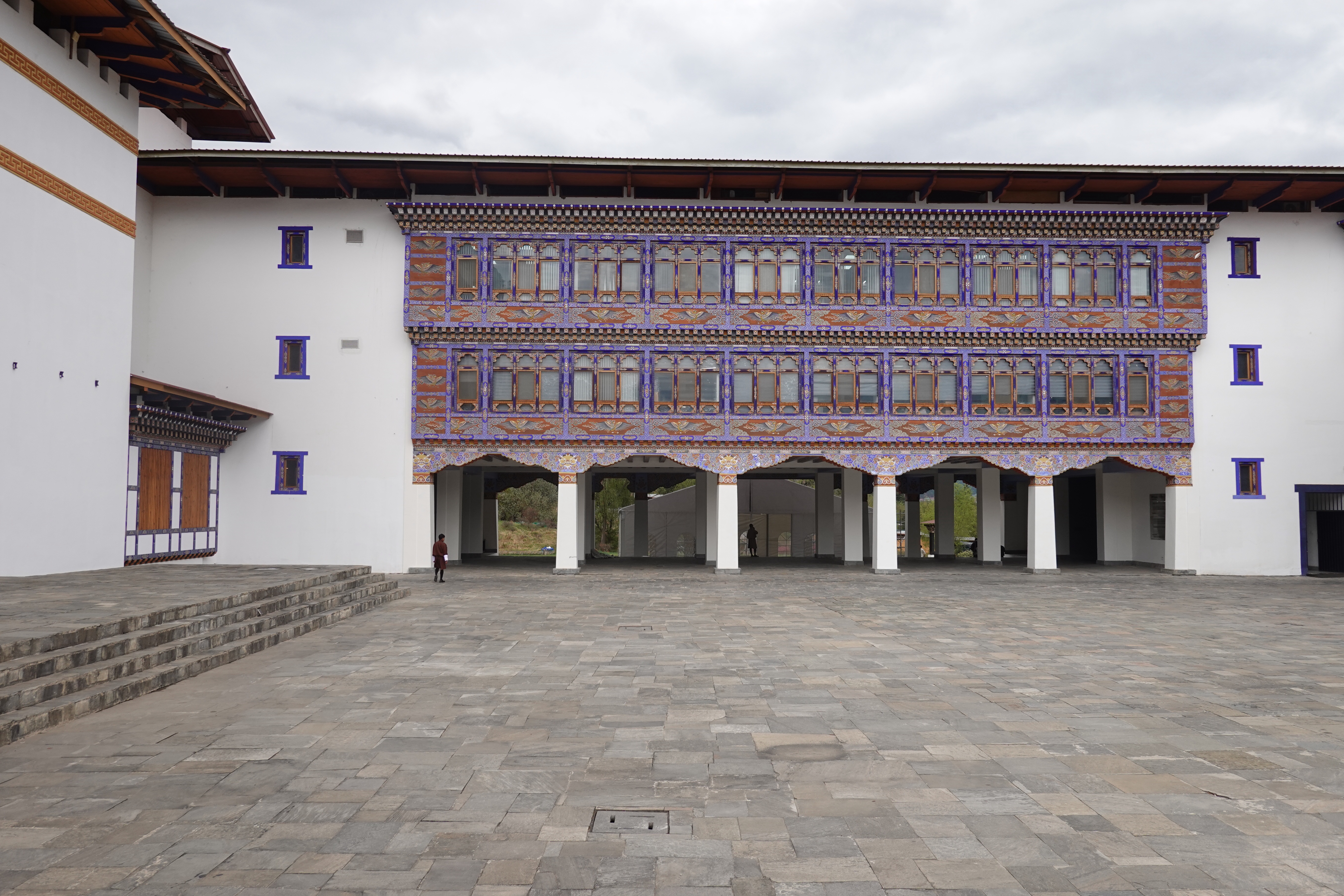 Well we crossed over from India into Bhutan the other day and it was a bit like the moment when Dorothy realizes she’s not in Kansas anymore. The map suggested some calm straight roads in India, up to the border town of Jaigaon, followed by some serious craziness to follow on Bhutan’s first highway and its only real land link to the rest of the world. But that told only part of the story. The road to Jaigaon was indeed flat and straight and well paved and blessed with the ultimate waste of Indian paint: lane markings. But at the outskirts of Jaigaon that all ended, and the main road through this busy but run down and beaten up trading town became something that looked and felt like someone had dug it all up, poured a lot of fresh concrete and then, before it dried, held a plowing match on it with water buffalo and followed up by using it for artillery practice before letting it set, after which it was covered in dirt to ensure dust when it was dry and mud when it rained. We pulled up to a lightly labelled building which was Indian immigration, as you need to check out, and went into a room with counters marked “Arrivals” and “Departures” but no one working as it was still before 10:00. Soon a lone clerk appeared, who went to work at the Arrivals counter and then, when that line was cleared, got up and walked two feet and sat down at Departures. Many stamps later we were out, though we then had to stand in the rain at a booth while a man in a uniform wrote down in longhand about a dozen categories of information about each of us into a large ledger that looked like a book of spells. Then we met our Bhutan guide and driver, and stumbled in the now pouring rain down an alley paved with broken cobbles and lined with shabby shops to a small door in the border wall where a Bhutanese man in a uniform wrote down all of the same information in longhand into his ledger. But then we were allowed to go through into a magical new world with an immigration hall using passport scanners and then we walked out on the other side of the building and we were in Bhutan. It was vertigo inducing: it wasn’t raining on this side of the border; the streets were wide and paved; the traffic was light and orderly; no one honked; there was absolutely no litter; and the shopfronts were tidy and glassed in and prosperous. We were dizzy.
