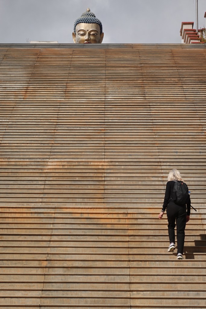 But the showstopper was the giant Buddha that sits high on the shoulder of a hill overlooking the city. About 54 meters high, made of bronze at a cost of over US$100million, and financed by a guy from Singapore who was clearly trying to make up for something. We decided to walk up the 288 steps rather than drive to the top, which seemed like a good idea from the bottom, and the slow reveal made for a terrific effect. It should have seemed like a gaudy and over the top display, but the feeling it imparted was strangely peaceful, perhaps because it commemorated one of the previous kings’s birthdays but was dedicated to world peace.